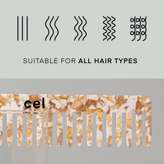 Cel’s Hair Comb is designed with widely spaced teeth to gently detangle your hair and thus prevent it from breakage. Use Cel’s Hair Comb to evenly distribute your conditioner in the shower, or right after you wash your hair, to detangle and simultaneously stimulate your hair follicles.